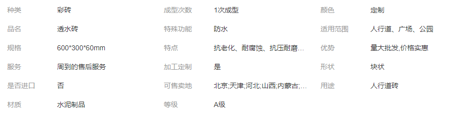 長期供應(yīng)水泥磚透水磚 規(guī)格齊全 1次成型 人行道、廣場、公園 塊狀